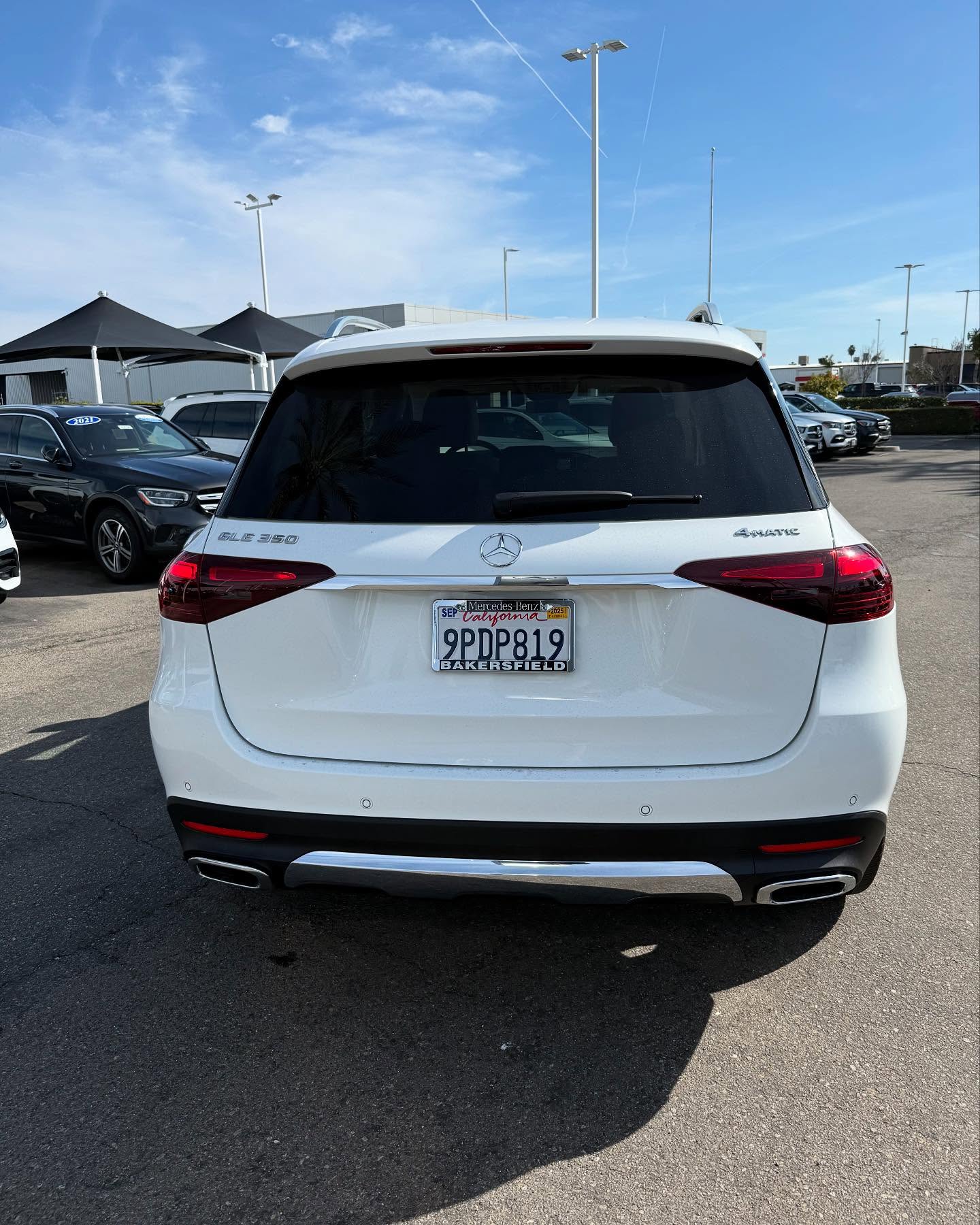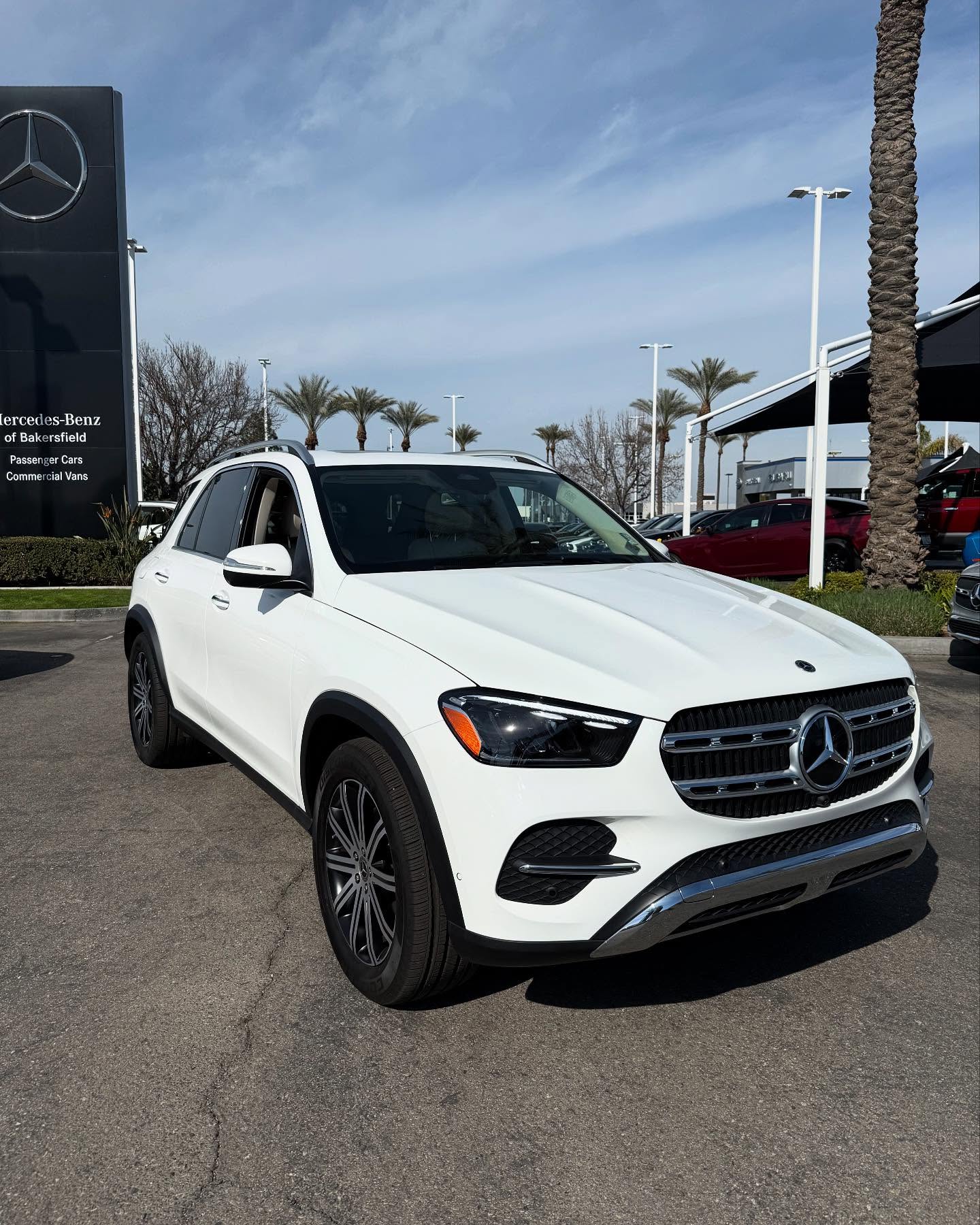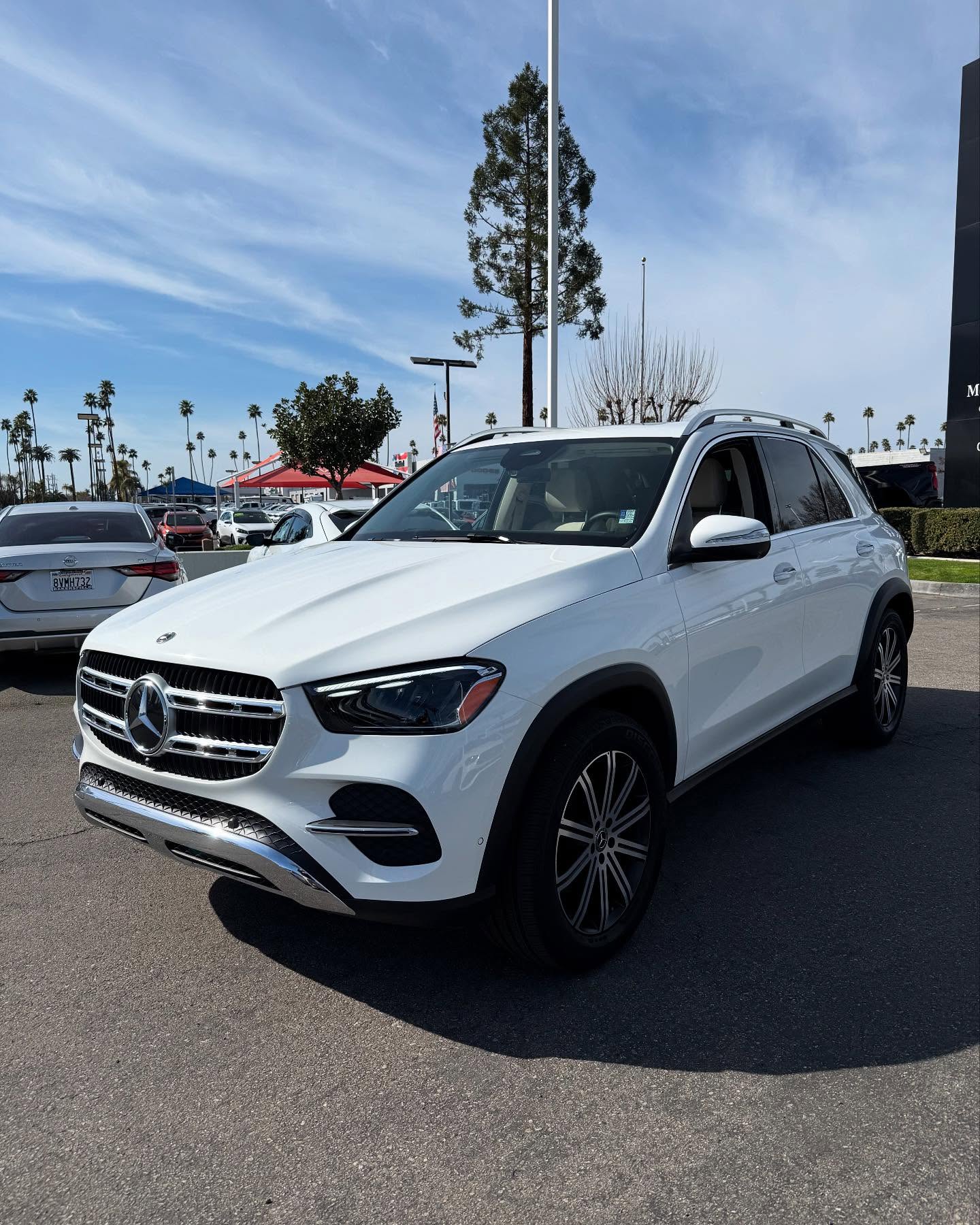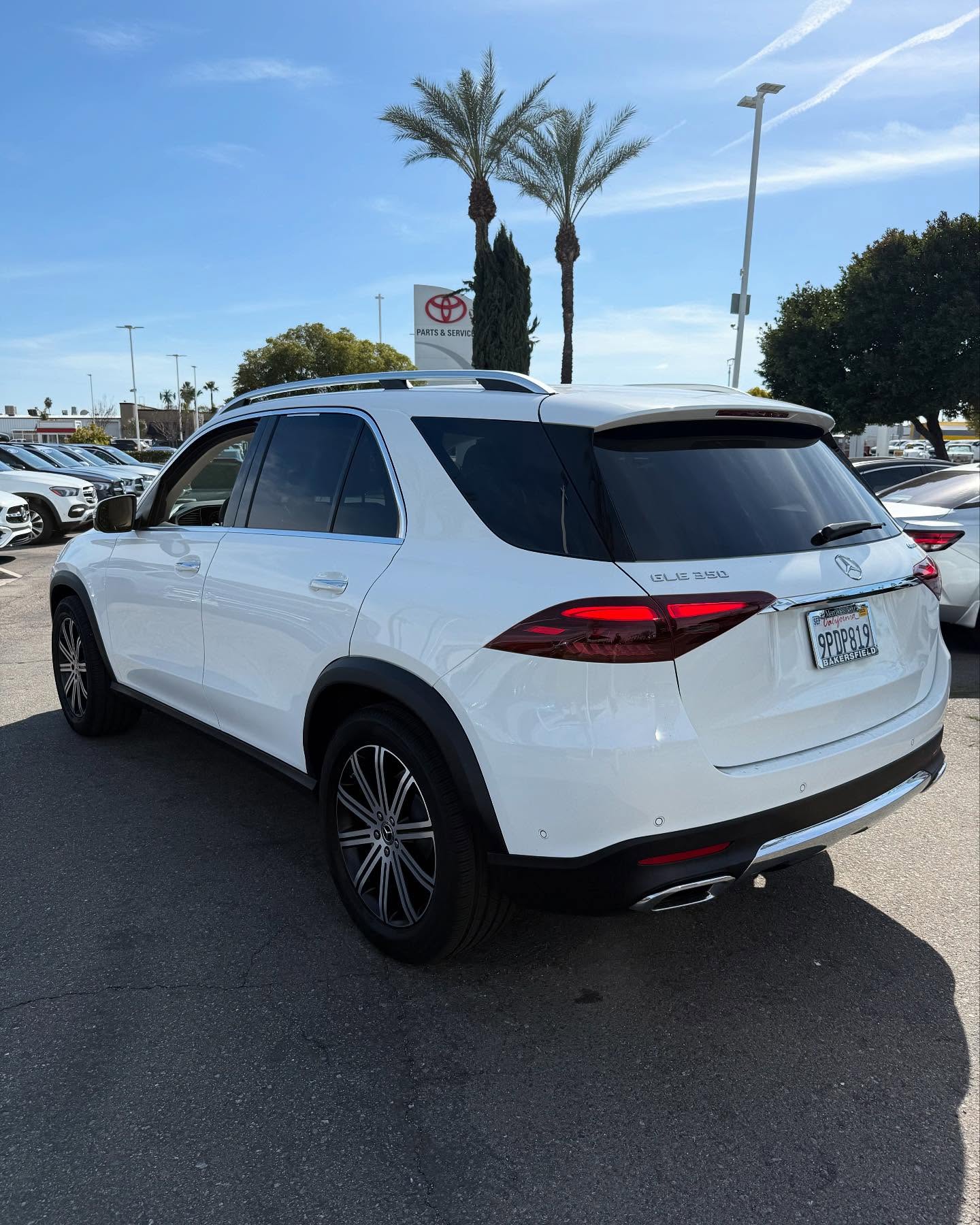 The 2025 Mercedes-Benz GLE 350 is a luxury midsize SUV featuring a 2.0L turbocharged four-cylinder engine with a mild-hybrid system, a 9-speed automatic transmission, and standard 4MATIC® all-wheel drive. Key exterior design updates include revised triple-LED headlights, a new grille, and updated bodywork, while the interior offers soft-touch materials, available open-pore wood, a 12.3-inch infotainment system, and power-adjustable, heated, and ventilated seats. It comes standard with a two-row configuration but can be ordered as a three-row SUV, offering a comfortable and smooth driving experience.