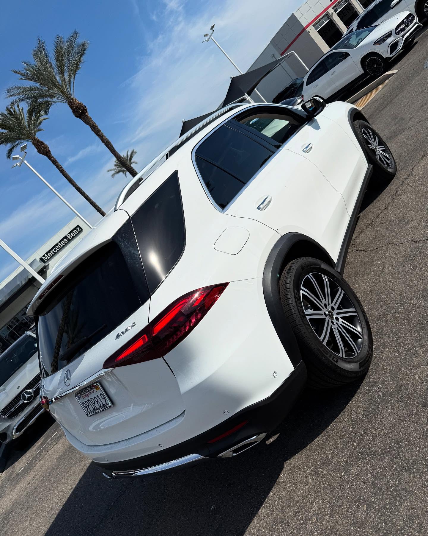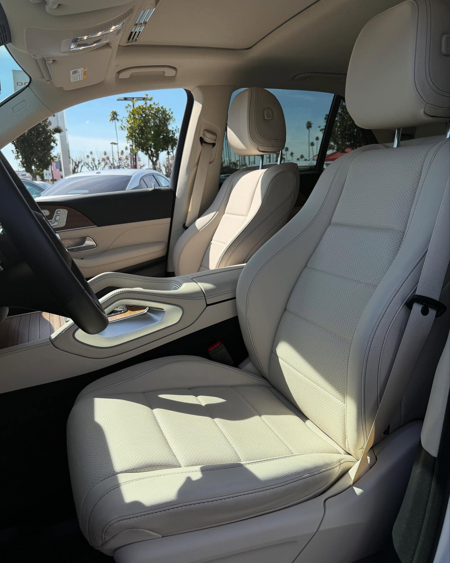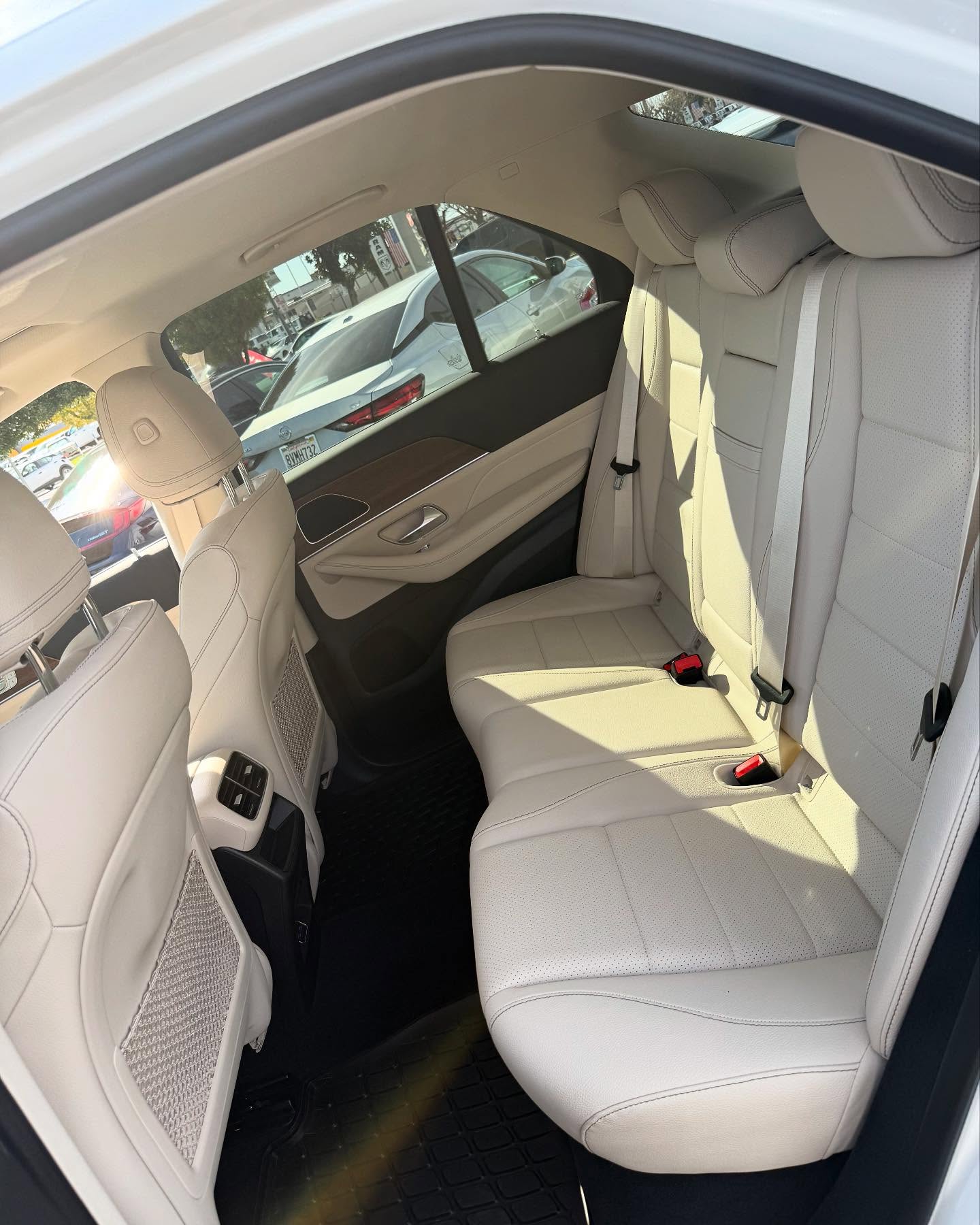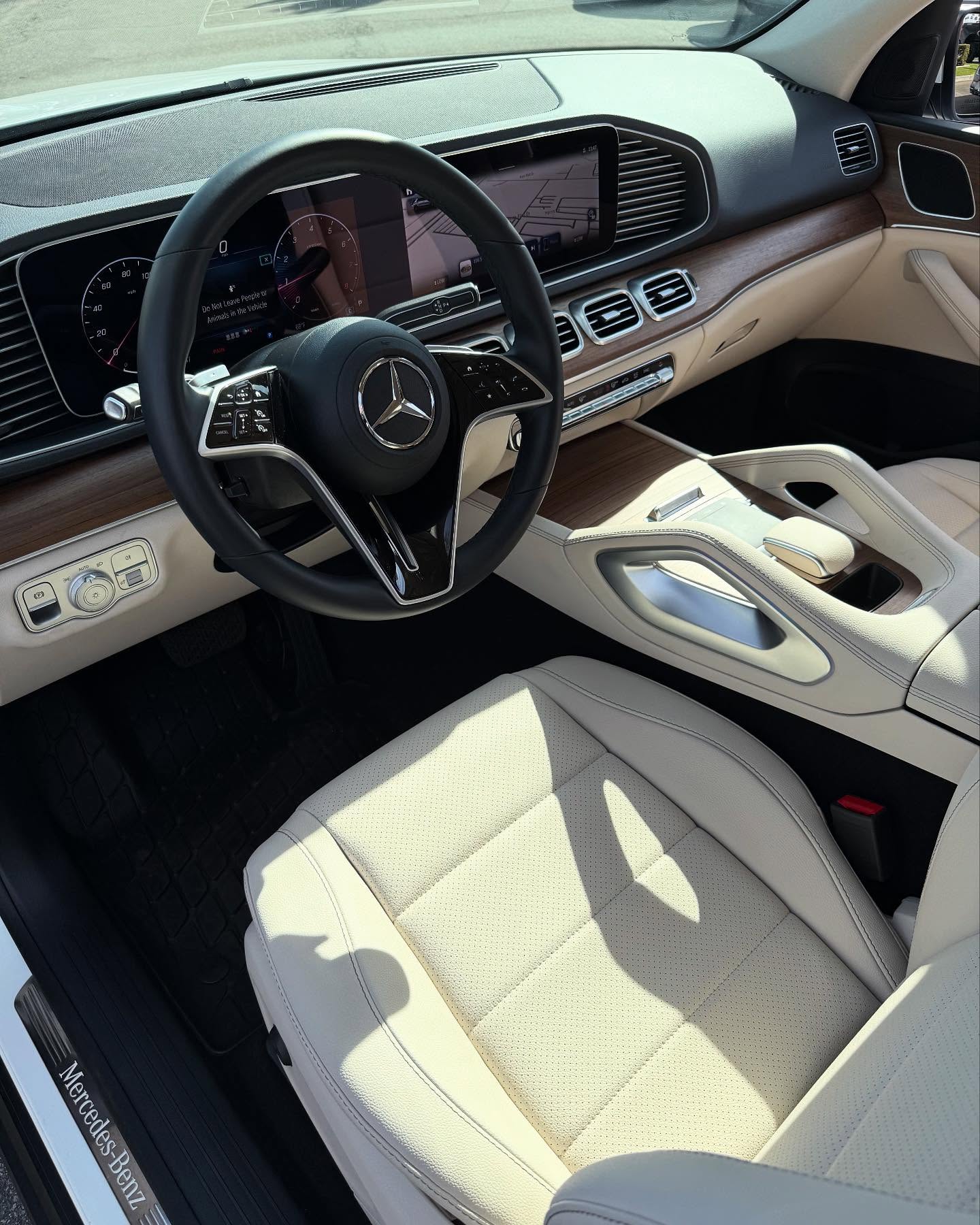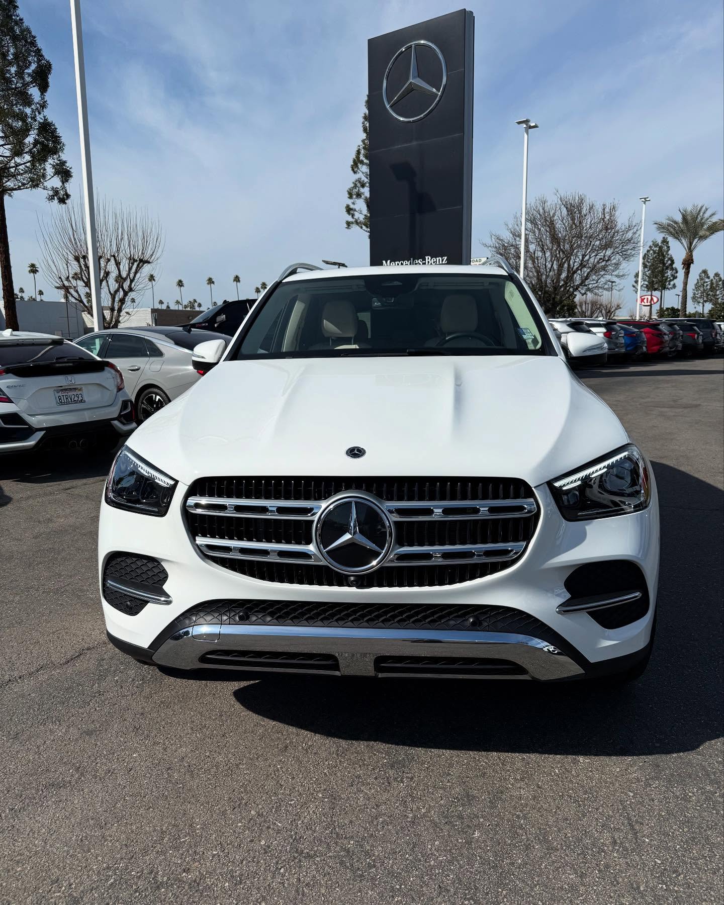 The 2025 Mercedes-Benz GLE 350 is a luxury midsize SUV featuring a 2.0L turbocharged four-cylinder engine with a mild-hybrid system, a 9-speed automatic transmission, and standard 4MATIC® all-wheel drive. Key exterior design updates include revised triple-LED headlights, a new grille, and updated bodywork, while the interior offers soft-touch materials, available open-pore wood, a 12.3-inch infotainment system, and power-adjustable, heated, and ventilated seats. It comes standard with a two-row configuration but can be ordered as a three-row SUV, offering a comfortable and smooth driving experience.